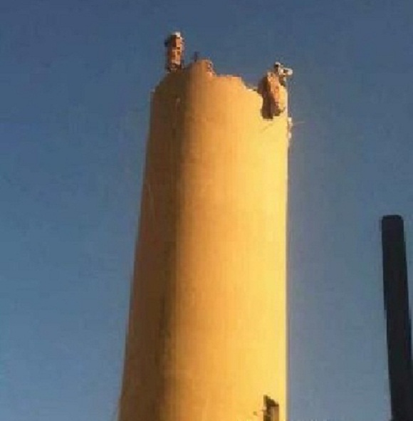 3、煙囪筒壁:在筒身內(nèi)部達設腳手架,施工人員在腳手架上作業(yè),用空壓機打成小塊,在用氧氣割掉鋼筋。