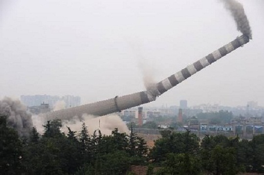 內(nèi)江煙囪爆破拆除-內(nèi)江電廠兩根210米高煙囪成功爆破