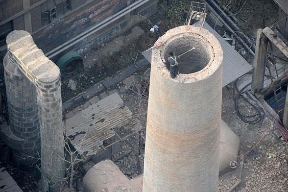 很多磚煙囪的位置都在鍋爐房旁,位置靠近廠房。這一類在廠區(qū)內(nèi)的周邊有設備的磚煙囪我們一般就采用人力拆除煙囪作業(yè)。人力拆除磚煙囪,對周邊的環(huán)境要求極低,可以最大限度的保護周邊的設備,廠房等。人力拆除磚煙囪需要施工人員站在幾十米的高空采用電鎬拆除磚結構,切割機或者液壓剪對煙囪內(nèi)部的鋼筋結構。人力拆除煙囪的工期一般的一座45米的煙囪拆除時間在15天左右,好拆的可以控制在10天,不好拆的可以拆至一個月,當然還要看施工期間的天氣情況。人力拆除煙囪的價格,主要是看煙囪周邊環(huán)境,和煙囪整體結構的情況。